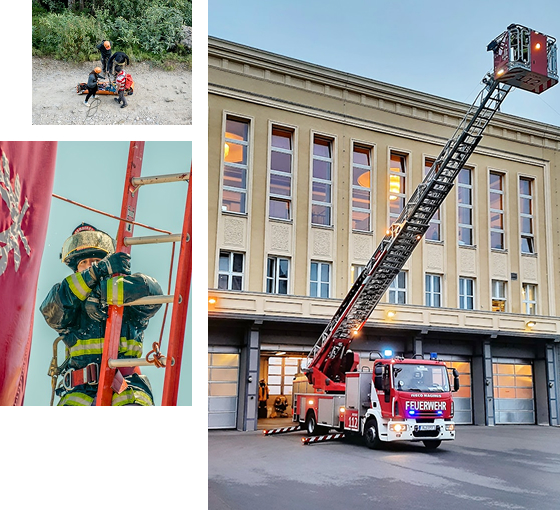 When, for example, an emergency occurs on a 60-meter-high construction crane, many fire departments reach their limits, and this is precisely where the Wörgl Volunteer Fire Department’s high-altitude rescue team comes in. Thanks to the targeted training of its 18 members and the associated equipment, no operation is insurmountable. Our fire department doctor and paramedics provide medical care at exposed locations.